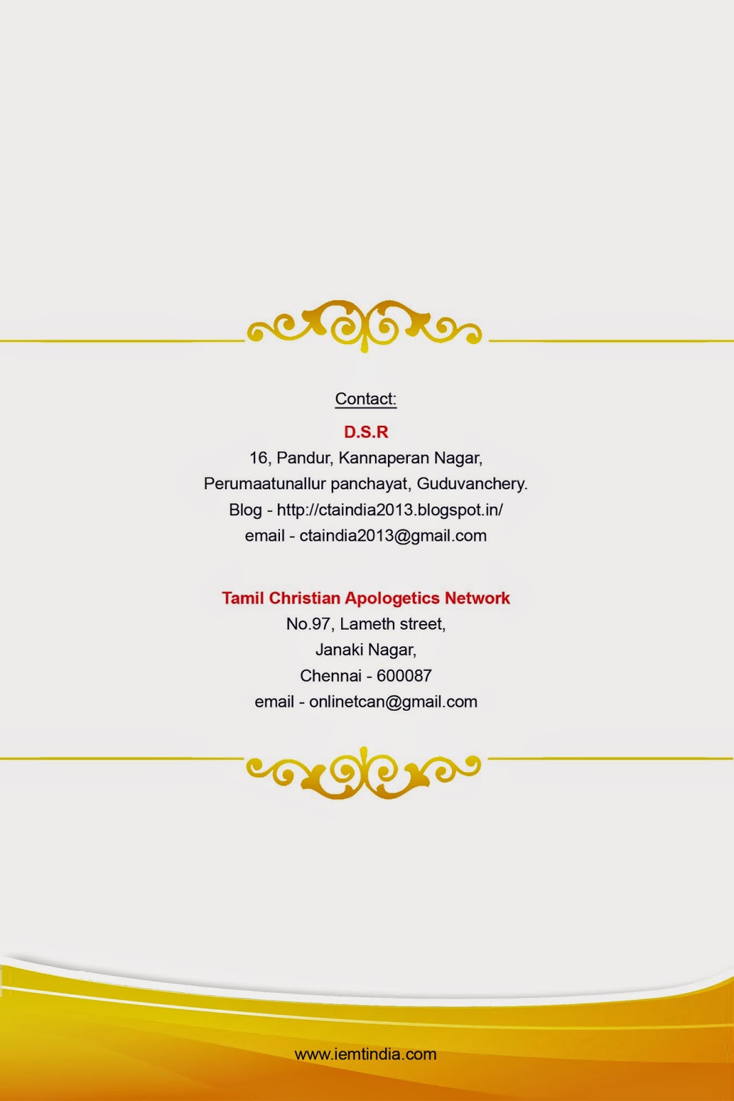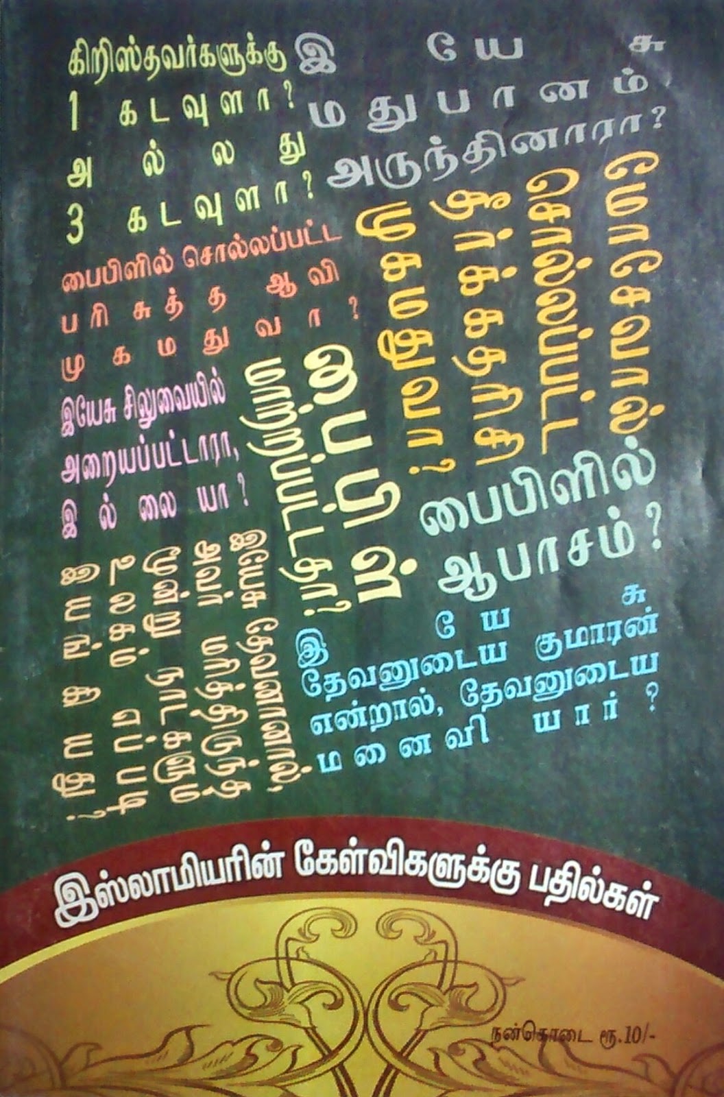 கிறிஸ்துவுக்குள் அன்பான சகோதர ,சகோதரிகள் அனைவருக்கும் ஆண்டவராகிய இயேசு கிறிஸ்துவின் நாமத்தில் வாழ்த்துக்கள்.சில நாட்கள் மிகுந்த வேலை பளு காரணமாக உங்களை சந்திக்க முடியவில்லை.மீண்டும் இந்த பதிவின் மூலம் உங்களை சந்திப்பதில் மிகுந்த மகிழ்ச்சி அடைகிறேன்.இந்த பதிவில் உங்களுக்கு ஒரு புத்தகத்தை அறிமுகப்படுத்துவதில் மிகுந்த மகிழ்ச்சி அடைகிறேன்.கடந்த நாட்களில் இஸ்லாமியர்களுக்கு பதில் அளிக்ககூடிய டிவிடிகளும்,புத்தகங்களும் வெளிவந்துகொண்டே இருக்கிறது.அந்த வரிசையில் தற்பொழுது இஸ்லாமியர்கள் பைபிளுக்கு எதிராக கேட்கும் 10 கேள்விகளுக்கான பதில்கள் தமிழிலும்,ஆங்கிலத்திலும் புத்தகமாக வந்துள்ளது.மிகவும் சிறப்பாக எழுதப்படுள்ள இந்த புத்தகங்கள் விசுவாசிகளுக்கு மிகவும் பயனுள்ளதாக இருக்கும் என்பதில் சந்தேகம் இல்லை.புத்தகம் தேவைப்படுவோர் கீழே உள்ள முகவரியில் தொடர்புகொள்ளவும்.ஆண்டவர் இயேசு கிறிஸ்துவின் கிருபையும் ,சமாதானமும் உங்கள் அனைவருக்கும் உண்டாவதாக.ஆமேன்