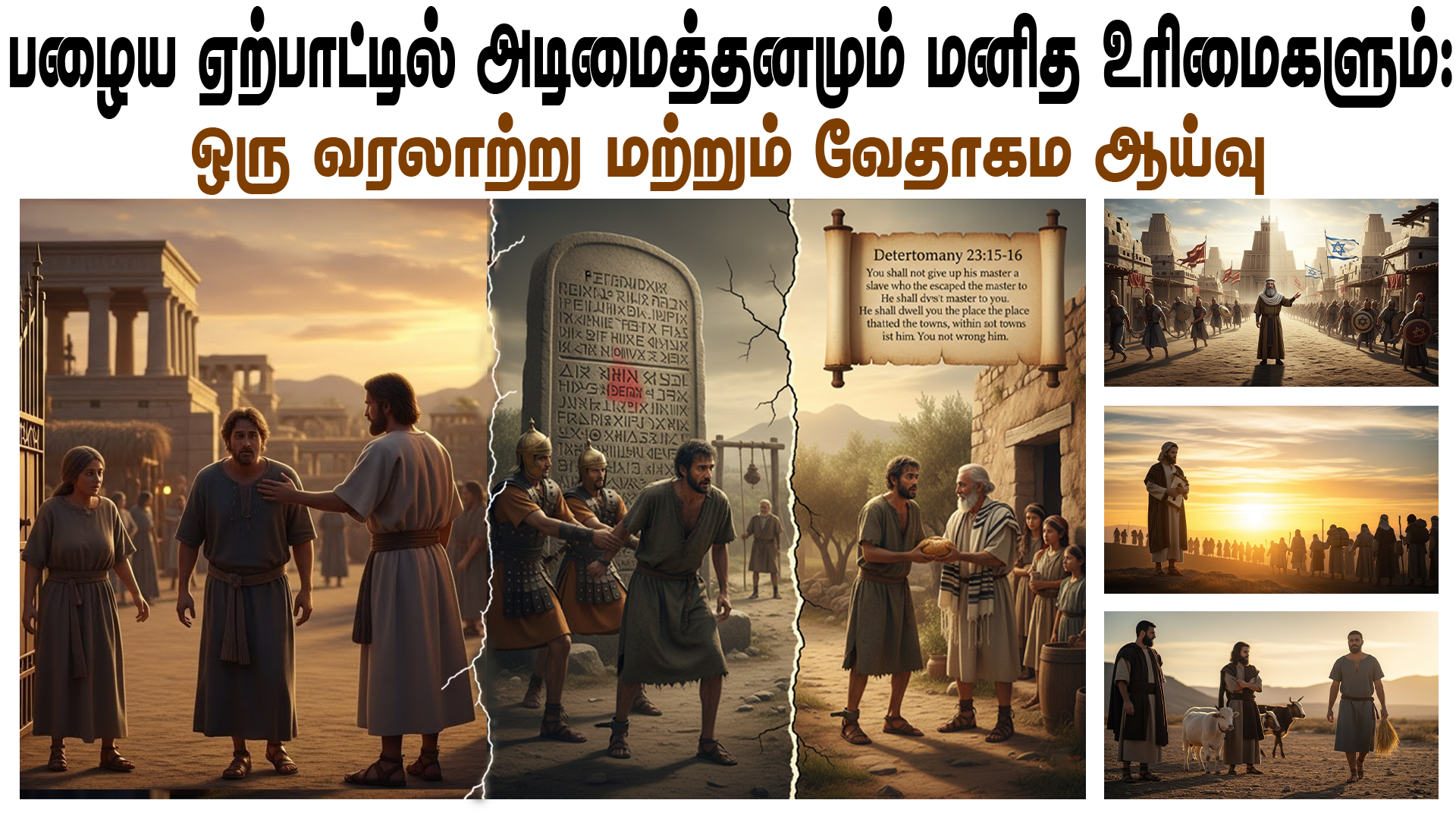 பழைய ஏற்பாட்டை மேலோட்டமாக வாசிக்கும் ஒருவருக்கு, தேவன் அடிமைத்தனத்தை ஆதரித்தது போன்ற தோற்றம் ஏற்படுவது இயல்பு. ஆனால், பண்டைய காலத்தின் சமூகப் பொருளாதார சூழலையும், இஸ்ரவேல் தேசத்தைச் சுற்றியிருந்த மற்ற நாடுகளின் சட்டங்களையும் ஒப்பிட்டு ஆய்வு செய்யும்போது, வேதாகமம் அடிமைத்தனத்தை ஆதரிக்கவில்லை என்பதும், மாறாக அக்காலத்தில் நினைத்துப்பார்க்க முடியாத மனித உரிமைகளை அது நிலைநாட்டியது என்பதும் தெளிவாகிறது.